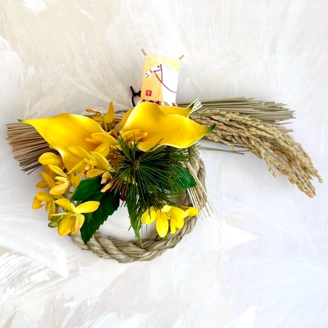 Size 直径16cm (花器は非売品です) 〜Mie de La Fraiseのしめ縄飾りの特徴〜 毎年イヤーズプレートを集めるように、その歳その歳のあなた様の心にぴたりと来るお花をお選び下さいませ。 そしていくつか集まった時、それらを一つの器や花器に合わてみてください。 そこにはあなた様だけの《特別に素晴らしい世界観を持った作品が誕生》することでしょう。 是非ともお試しください! 尚、お花はしめ縄から簡単に取り外せる仕様になっております。しめ縄飾りとして飾られた後は、長く『リビングアクセサリー』としてお楽しみ下さいませ。 どうぞ良いお年をお迎え下さい。 ◉ご購入の際の注意点 ・ひとつひとつ丁寧に制作しておりますが、 ハンドメイド作品でありますことをご理解の上 ご購入いただけますと幸いです。 ・アーティフィシャルフラワーは 生花をリアルに美しく再現して作られた、 繊細で上質な造花です。 ・直射日光に長時間当たりますと 変色する場合がございます。 また、風雨にさらされる場所での ご使用はお控えください。 ・お花の色や質感など、写真と実物が多少違って 見える場合がございます。 ・梱包には十分気を付けておりますが、配送中に 花材が取れてしまうことがございます。 その際は恐れ入りますが、お客様お手持ちの 接着剤(ボンドやグルーガン等)で 止めていただけますと幸いです。 ・他店でも販売しておりますので、 売り切れの際はご容赦くださいませ。 ◉キャンセル・返品について ・ご注文後のキャンセルやイメージの違いなど、 お客様のご都合による返品や返金、 交換などの対応はお断りしております。