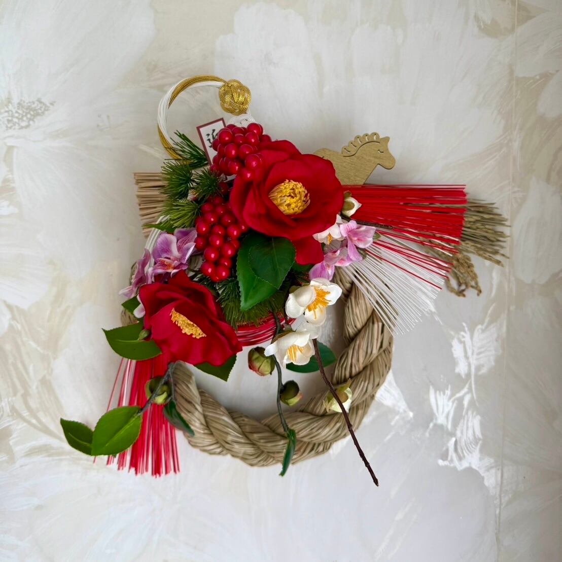 尚、お花はしめ縄から簡単に取り外せる仕様になっております。しめ縄飾りとして飾られた後は、長く『リビングアクセサリー』としてお楽しみ下さいませ。