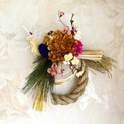 尚、お花はしめ縄から簡単に取り外せる仕様になっております。しめ縄飾りとして飾られた後は、長く『リビングアクセサリー』としてお楽しみ下さいませ。