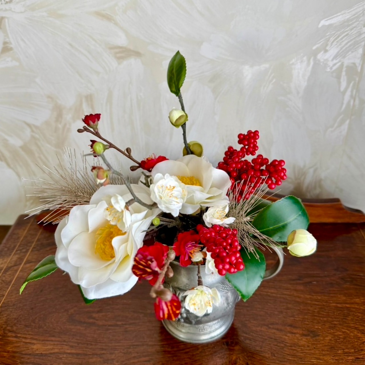 尚、お花はしめ縄から簡単に取り外せる仕様になっております。しめ縄飾りとして飾られた後は、長く『リビングアクセサリー』としてお楽しみ下さいませ。
