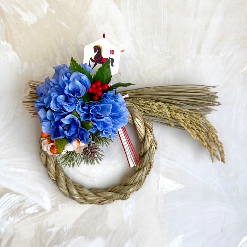 尚、お花はしめ縄から簡単に取り外せる仕様になっております。しめ縄飾りとして飾られた後は、長く『リビングアクセサリー』としてお楽しみ下さいませ。