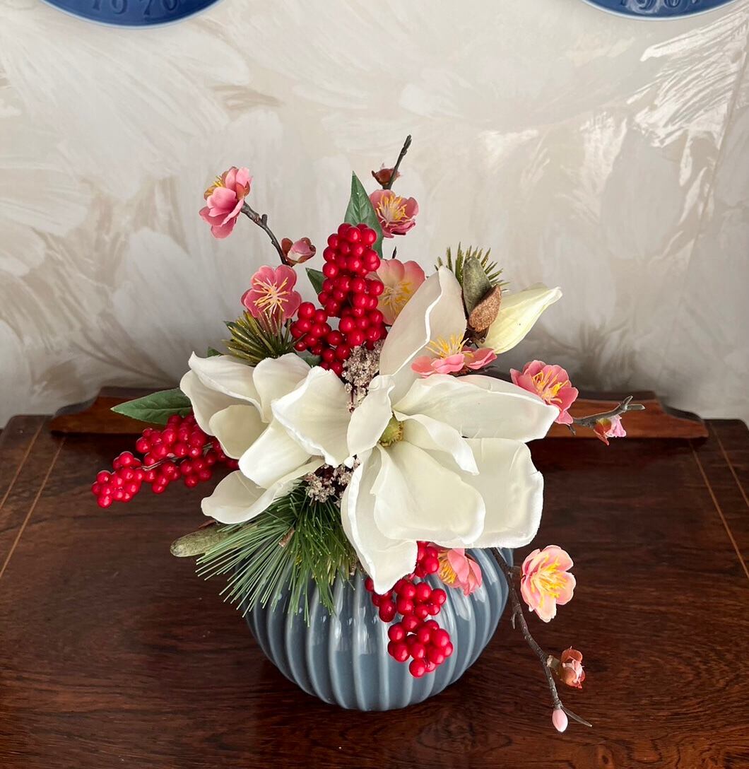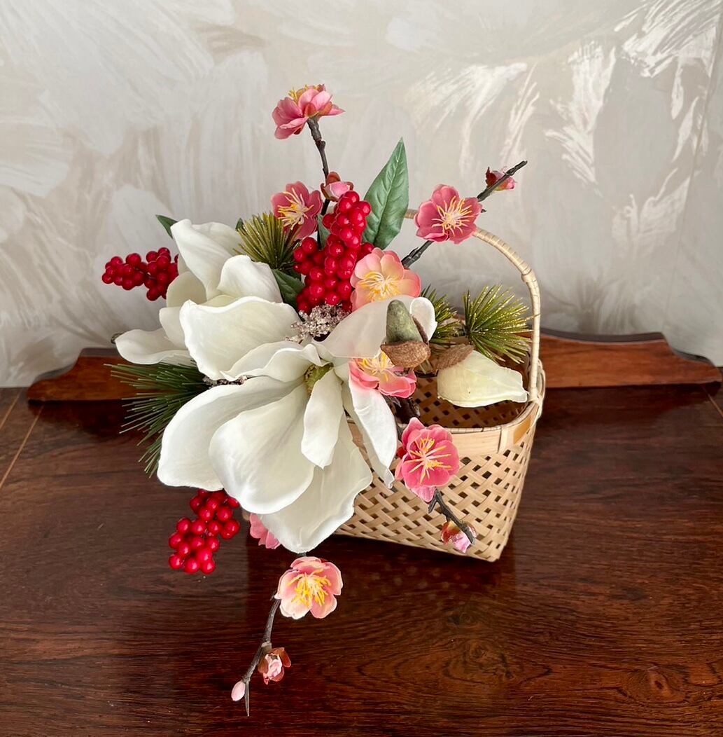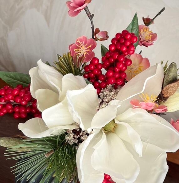 尚、お花はしめ縄から簡単に取り外せる仕様になっております。しめ縄飾りとして飾られた後は、長く『リビングアクセサリー』としてお楽しみ下さいませ。