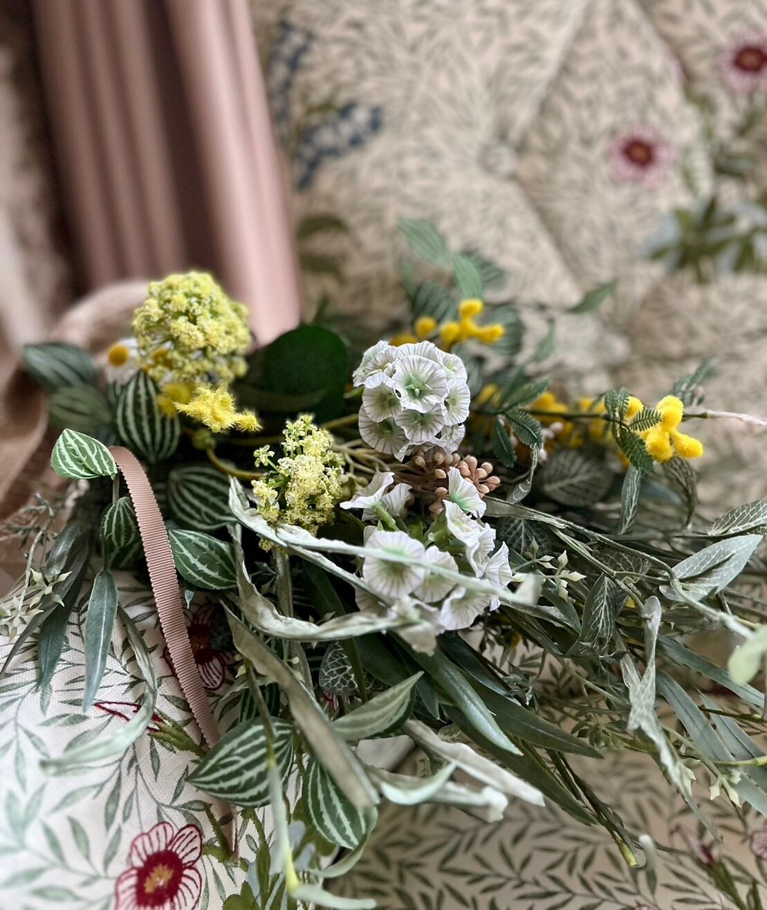 プリムミモザ、細葉ユーカリスプレー、パピエグラススプレー、マレーナアストランティア、アンジェリカ、フィットニアスプレーなど